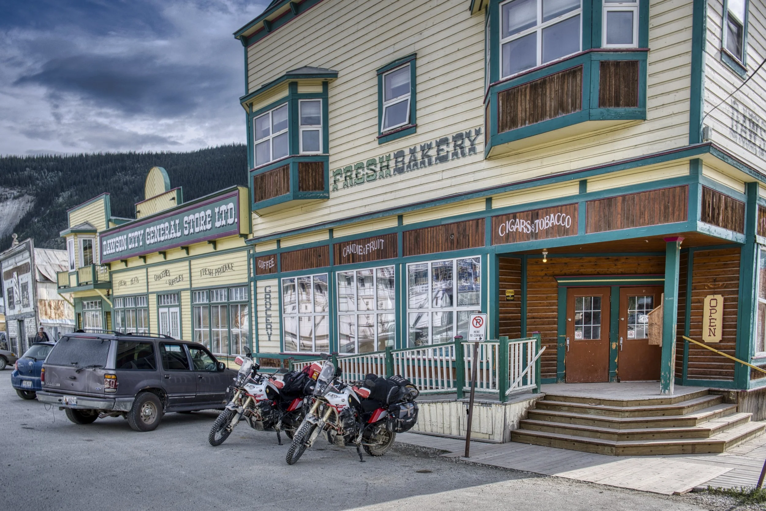 Dawson City only exists because of the worlds biggest gold rush that took place in the late 1800’s. We arrived on the very day that gold was first found 125 years ago and marked the start of the gold rush. However, the festivities would not start until the weekend - go figure! Men and women of all nationalities made their way up the treacherous Klondike river in pursuit of riches being found in the ground and the river. Our first objective was to get cash. We had paid the previous nights camping with $US, so we needed $CAD. Where did we find the bank with a cashpoint? Right next to the shop that sold weed. Yes Canada have also made weed legal and why not? Less harmful than alcohol (IMO) and legalising it means the government can control the availability and tax it. I wonder how long before the UK follow suit.