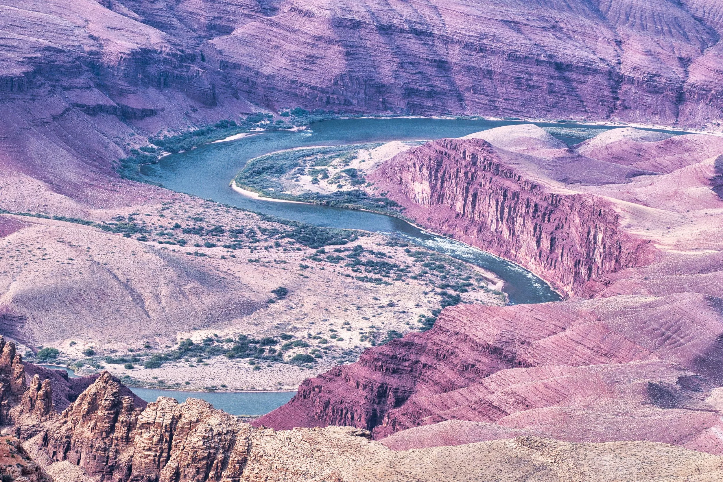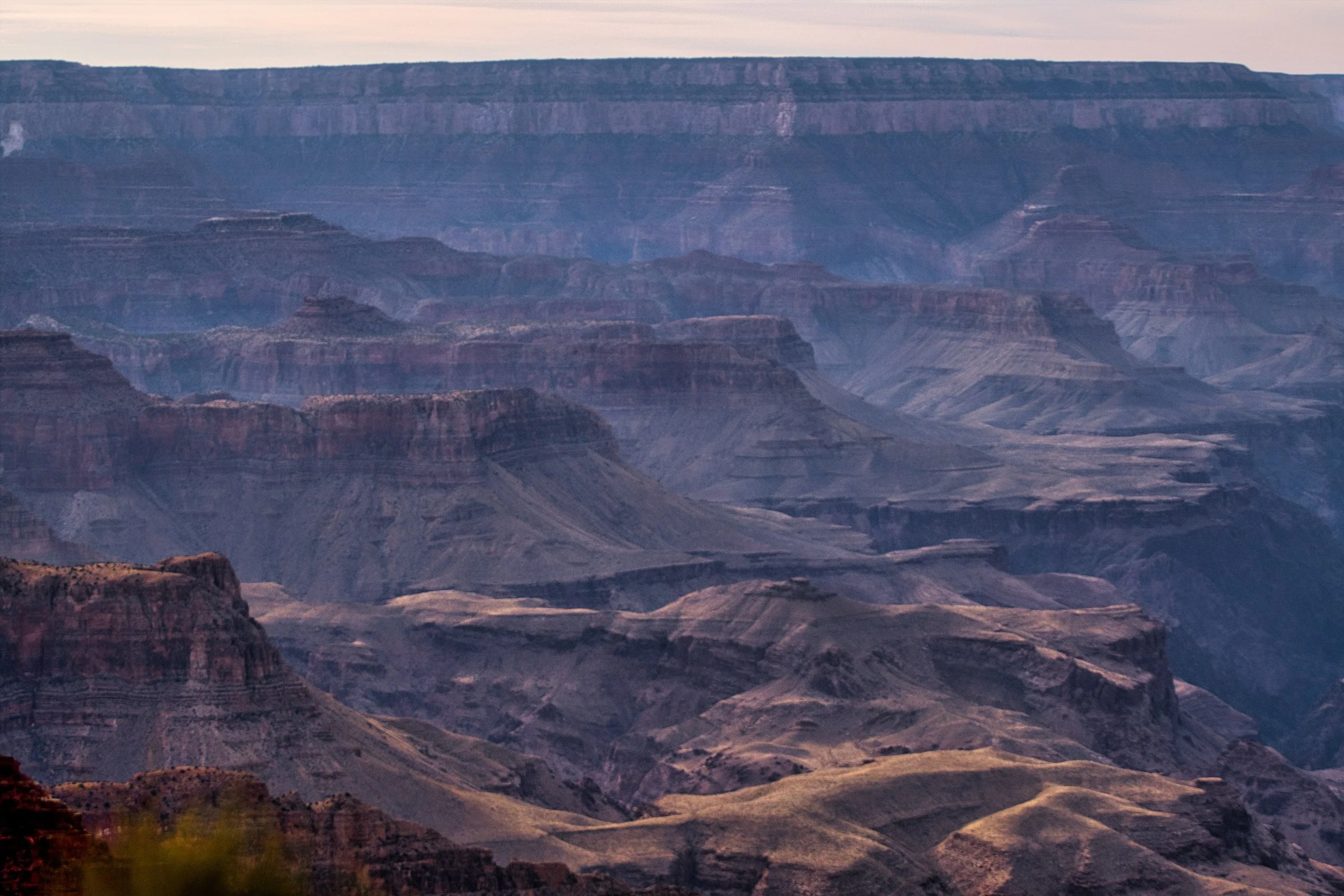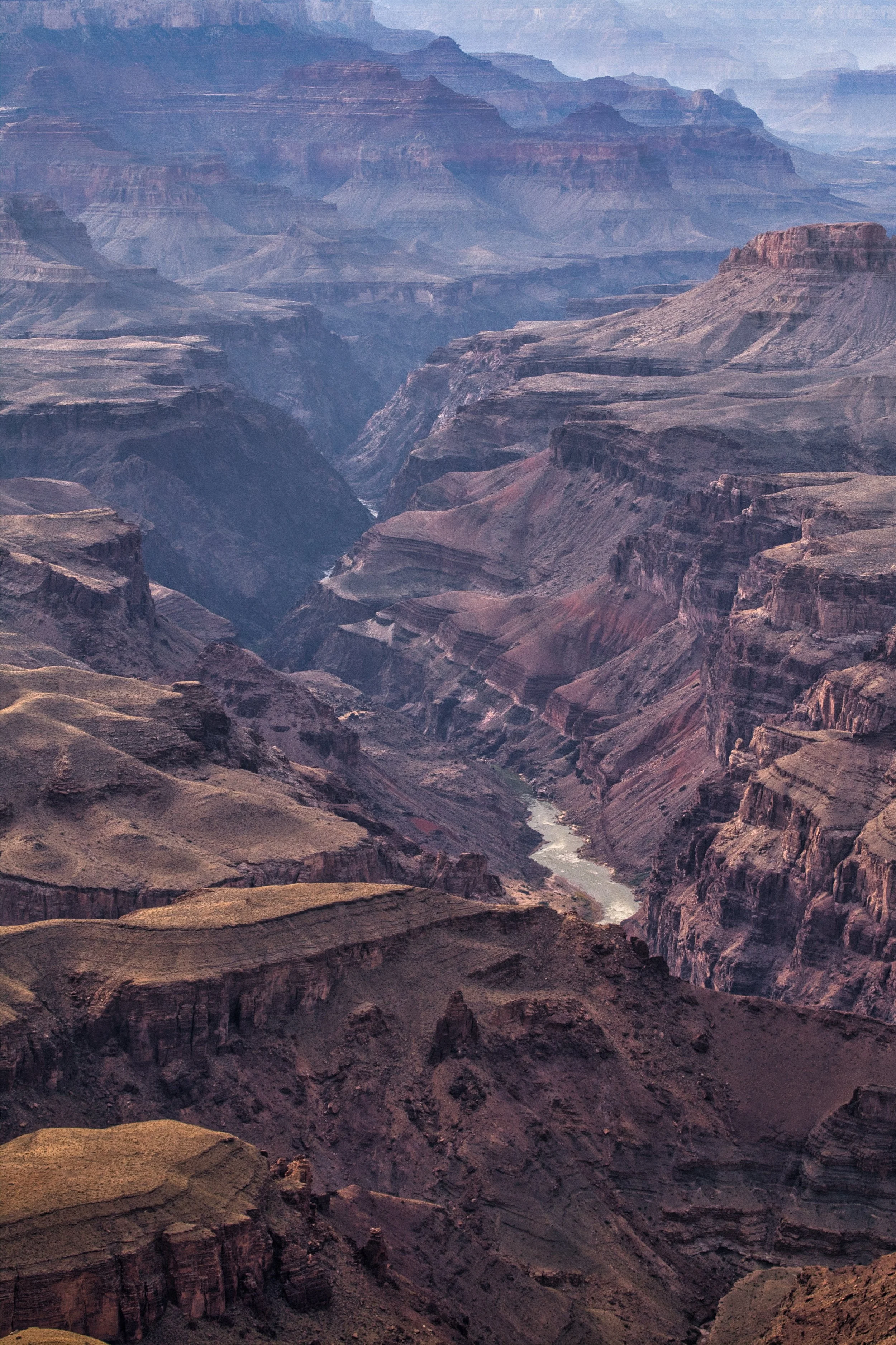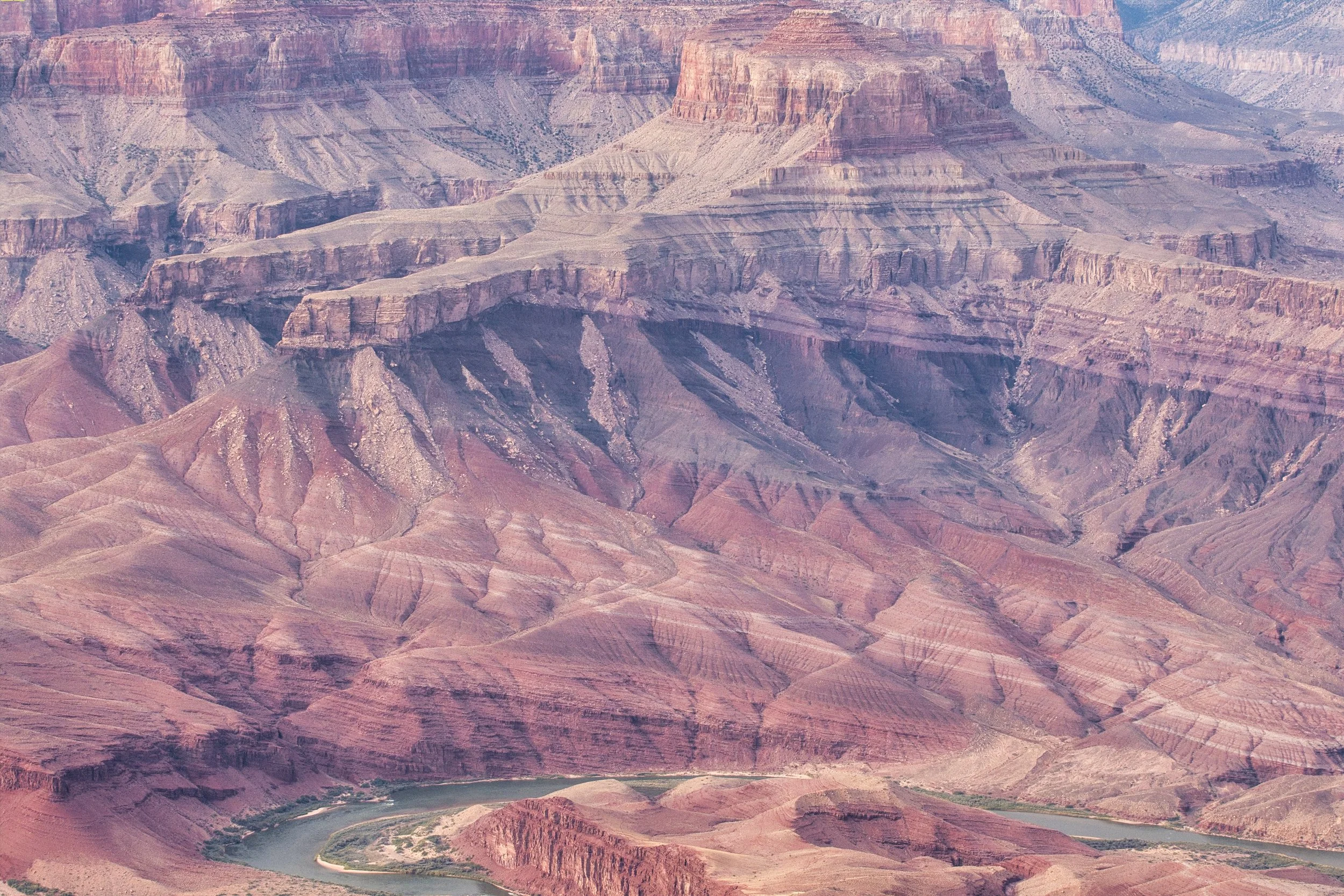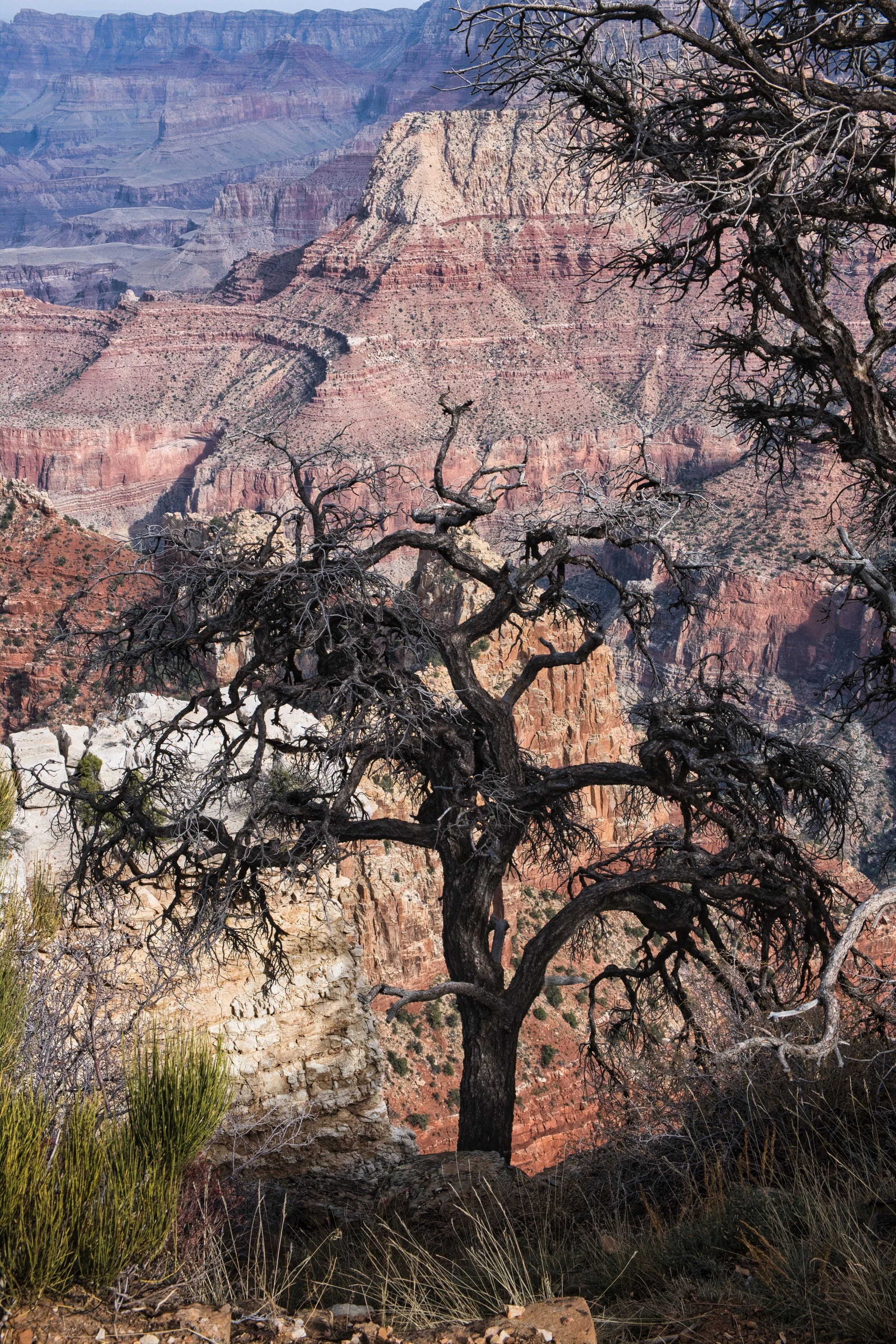 The geology of the canyon is still being understood to this day. Some areas of the canyon are 100’s of billions of years old, whereas others are a mere 5 or 6 billion. What all geologists agree is that the Colorado river is responsible for carving the canyon as the North American continent rose from the sea. Generally speaking, the river carved its way as the ground around it rose up. Whilst the rate of ground rising was reasonably consistent, the volume of river water changed depending on such things as ice-ages and latitude of the continent as it moved across the Earths mantle. In recent times, water levels are significantly reduced due to damming and extraction of water for irrigation and living in the desert, though in geological time, this is but a mere fraction of a second. The North Rim of the Canyon is approximately 300 metres higher than the south, showing the continuation of the uphill gradient we had ridden to reach the South Rim. Water and snow that falls to the north feeds the canyon, causing a greater number of tributaries than those to the south.