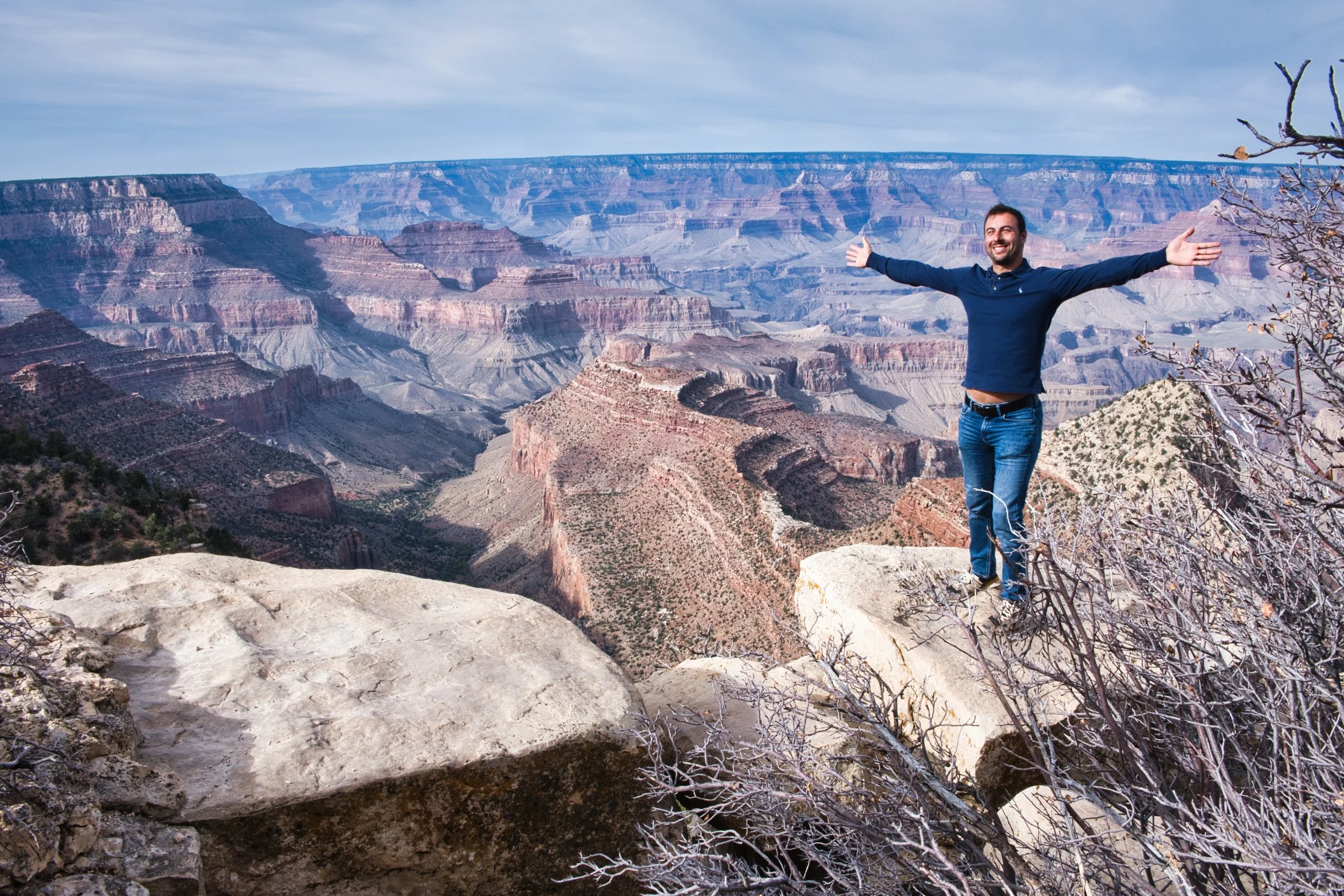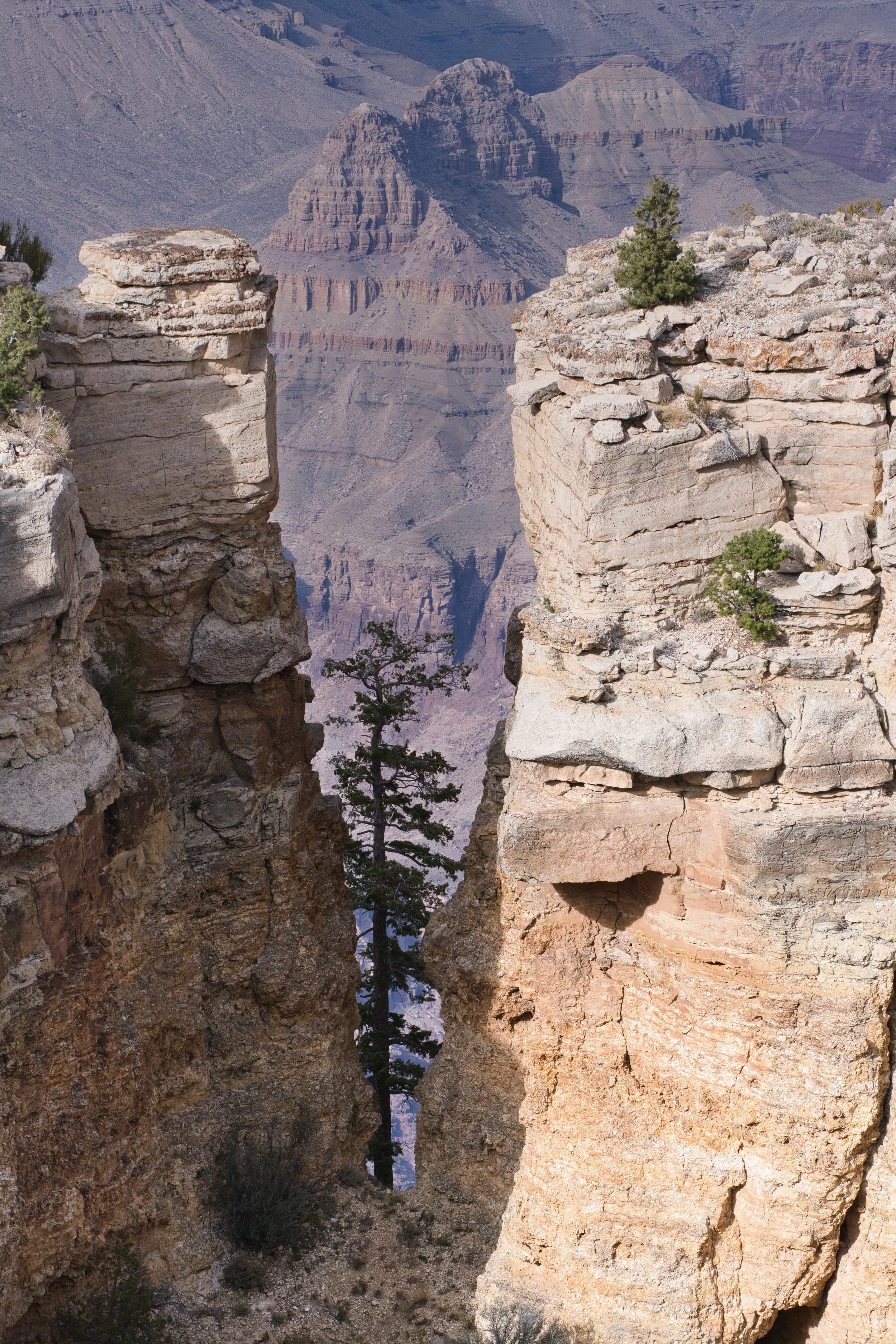 The Grandview Point was also the start of one of the few old, tribal trails that leads to the bottom. There were no newly placed flagstones or handrails to assist you in the descent and the throng of people jostling for position meant you either clung to the rock face like a limpet in a rock pool, or took your life in your hands to pass. After a few turns, there was a small peninsular with steep drops either side and a ‘jump/step’ across a gap to stand on the edge. Isi had reached her limit but took photos of those that felt more comfortable. Isi was happy to take their photo, though disappointed the resulting images did not reflect the gravity of the place.