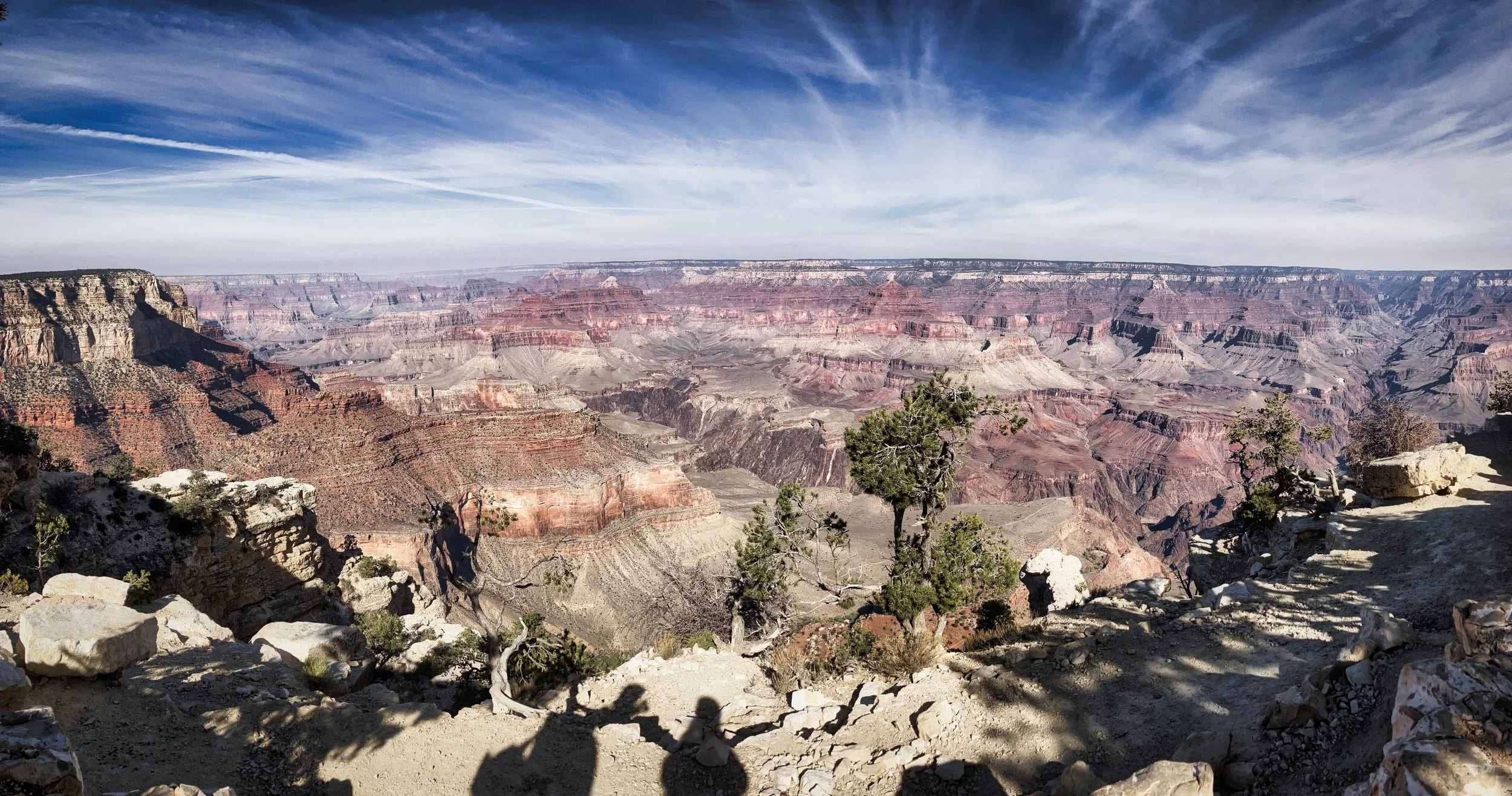 To give some stats on the size of the Grand Canyon, it is approximately 277 miles long, up to 18 miles wide and attains a depth of over 1 mile. If the canyon were filled with plaster of paris, removed from the mould and upturned, the height would be nearly twice that of Mount Snowdon, in North Wales (my reference when discussing heights with Isi). Whilst the Grand Canyon is not the largest or deepest in the world, it is considered one of the most impressive due to its very clear lines of sedimentary striation, that have formed since the Earth was young.